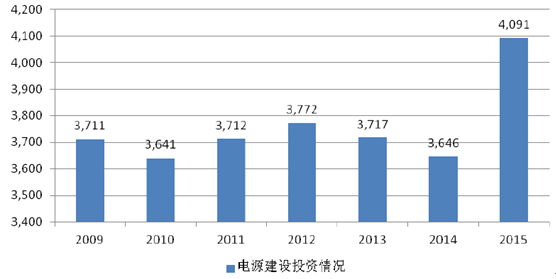 2009 年-2015 年六年間電源基本建設投資累計達26,290 億元,促進了我國電源建設快速發展。