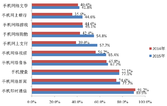 根據相關統計數據,2015 年國內手機新聞用戶規模呈現持續增長態勢,手機網絡新聞依然是現階段推動移動互聯網發展的主流應用之一。