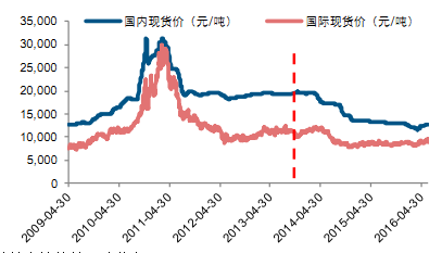 國內大豆現貨價與國際大豆現貨價走勢一致