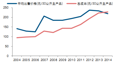 中國大豆總成本與平均收購價格對比