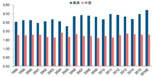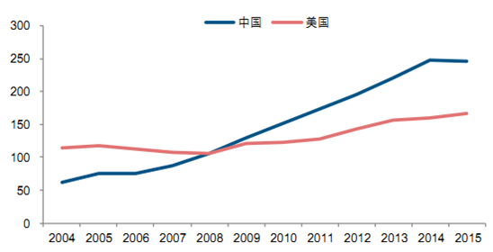 中美機械費用投入差距不斷縮小