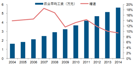 中國農業工資水平快速提升