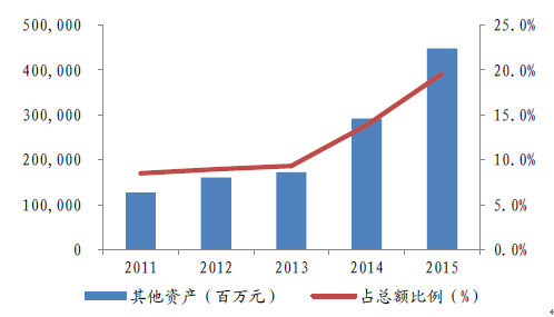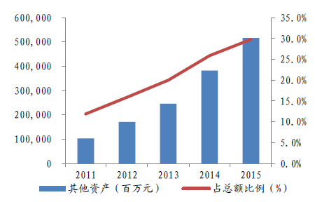 2011-2015年中國人壽其他資產及占比
