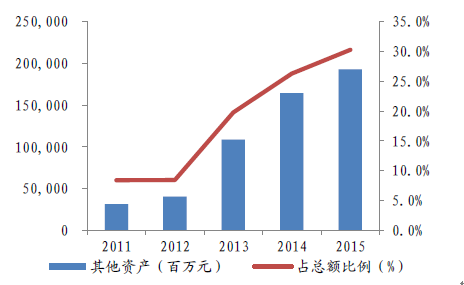 2011-2015年新華保險其他資產及占比