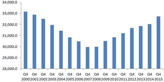 2000-2015年世界央行儲備金變化