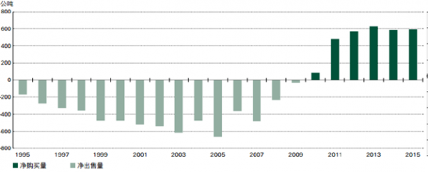 世界各國央行的黃金凈購買和凈出售量