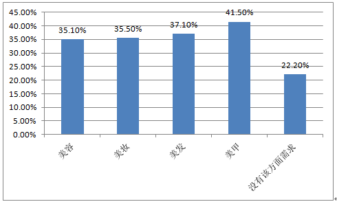 2016Q1中國(guó)手機(jī)網(wǎng)民對(duì)各項(xiàng)上門美業(yè)需求分布