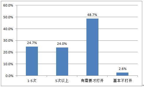 2016Q1中國(guó)上門美業(yè)O2O用戶每周打開(kāi)上門美業(yè)O2O應(yīng)用的頻次
