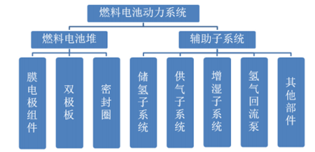 輔助系統輔助子系統中最主要的就是供氫和供氧系統,包括空壓機、增濕器、氫氣循環泵、高壓儲氫罐等組件,另外還有水熱管理子系統及監控子系統等。
