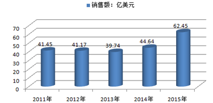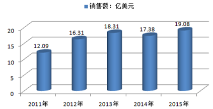 2011-2015年全球默沙東 HPV 疫苗 Gardasil售額規(guī)模