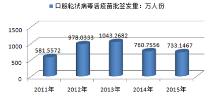 2011-2015年口服輪狀病毒活疫苗批簽發(fā)情況