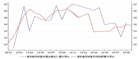 速凍食品 2014年 1-10月,收入同比增長15.7%%,利潤同比增長15.9%。世界各國的發展經驗也表明:我國速凍制品的消費擁有巨大的發展空間。