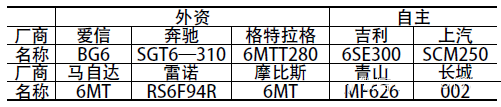 中國市場上的部分6MT產品