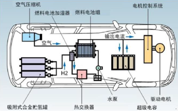 燃料電池(Fuel Cell)是一種將存在于燃料與氧化劑中的化學能直接轉化為電能的發電裝置。它從外表上看有正負極和電解質等,像一個蓄電池,但實質上它不能“儲電”而是一個“發電廠”,所以一個完整運作的氫能源汽車燃料電池動力系統由兩個核心部分組成,提供能量的燃料電池堆,以及支持燃料電池堆的運作的輔助子系統。 “發電廠”燃料電池電堆的組成包括膜電極組件、雙極板、密封件和緊固件,其中膜電極又可以分為催化劑、膜材料和擴散層。 輔助系統輔助子系統中最主要的就是供氫和供氧系統,包括空壓機、增濕器、氫氣循環泵、高壓儲氫罐等組件,另外還有水熱管理子系統及監控子系統等。