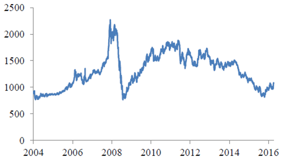 倫敦現貨鉑價格($/troz)