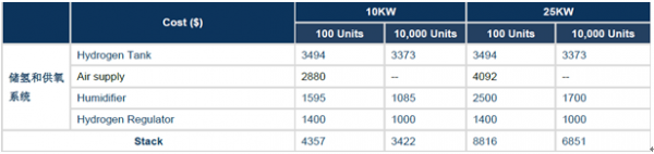 燃料電池輔助系統成本分析