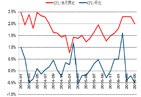2014-2016年中國CPI當月同比及環比
