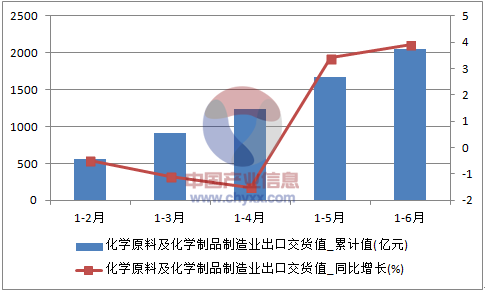 核心提示:智研咨詢數據顯示:2016年6月中國化學原料及化學制品制造業出口交貨值391.9億元,同比增長8.6%;2016年1-6月中國化學原料及化學制品制造業出口交貨值2049.1億元,同比增長3.9%。2016年1-6月中國化學原料及化學制品制造中經先略數據中心數據顯示:2016年6月中國化學原料及化學制品制造業出口交貨值391.9億元,同比增長8.6%;2016年1-6月中國化學原料及化學制品制造業出口交貨值2049.1億元,同比增長3.9%。