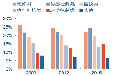 2009-2015 中國工控市場產品占比變化