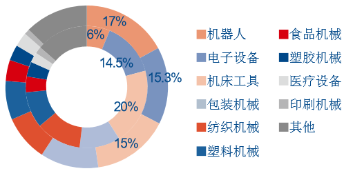 未來幾年,從產品上看, 伺服驅動器和電機,以及編碼器等高精尖類,預計將保持 20%以上的市場增速;從應用行業 看,機器人和電子制造設備是需求增長最快的下游,增速有望保持 25%以上。機床、塑機等 大型設備的數控化,以及食品包裝機械等大消費相關設備,預計將保持 15%以上的增長,保 證整體市場 15%左右的復合增速。
