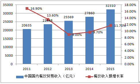 2011—2015年中國餐飲貿易收入狀況