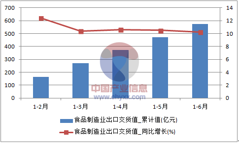 2016年1-6月中國食品制造業出口交貨值統計數據