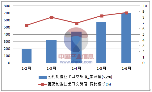 2016年1-6月中國醫藥制造業出口交貨值統計數據