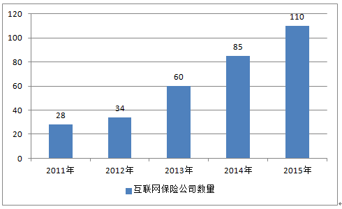 2011-2015年經營互聯網保險公司數量