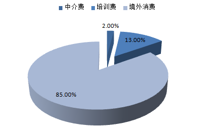 另外,目前絕大多數留學生辦理出國留學手續最終還是會選擇留學中介辦理。留學中介服務費用占了留學行業市場份額的2%。據調查,目前各留學中介對于留學中介服務費用的報價從1.5萬到6萬不等,根據不同國家、不同層次學校等因素有所不同。留學中介服務行業的市場規模至少有50億。