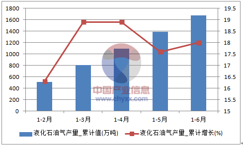 2016年1-6月全國液化石油氣產(chǎn)量統(tǒng)計圖