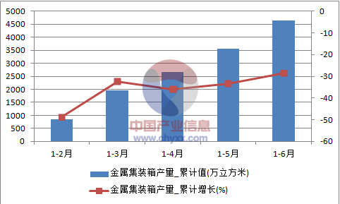 核心提示:智研咨詢數據顯示:2016年6月中國金屬集裝箱產量為1069.7萬立方米,同比下降5.6%。2016年1-6月止累計中國金屬集裝箱產量4633.3萬立方米,同比下降28.5%。2016年1-6月全國金屬集裝箱產量數據表如下表所示:2016年中經先略數據中心數據顯示:2016年6月中國金屬集裝箱產量為1069.7萬立方米,同比下降5.6%。2016年1-6月止累計中國金屬集裝箱產量4633.3萬立方米,同比下降28.5%。2016年1-6月全國金屬集裝箱產量數據表如下表所示: