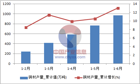 2016年1-6月全國銅材產量統計圖