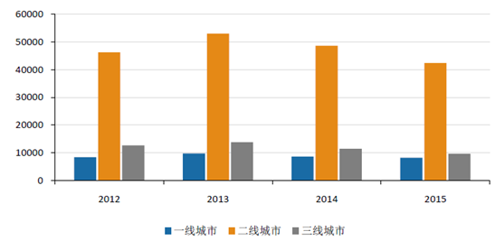 2012-2015年中國40大城市房屋新開工面積(萬平方米)