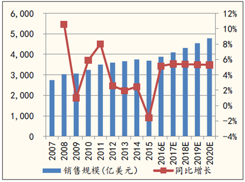核心提示:全球醫療器械市場起步早,增速較慢。全球醫療器械市場起步較早,目前發展已比較成熟。2015 年全球醫療器械銷售規模3690 億美元, 2007-2015 年復合增長率為3.79%。據預測,2020 年全球醫療器械銷售規模將達到4780 億美元全球醫療器械市場起步早,增速較慢。全球醫療器械市場起步較早,目前發展已比較成熟。2015 年全球醫療器械銷售規模3690 億美元, 2007-2015 年復合增長率為3.79%。據預測,2020 年全球醫療器械銷售規模將達到4780 億美元,2015-2020 年復合增長率5.31%,繼續保持穩中略升的態勢。
