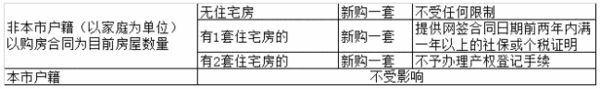 非本市戶籍居民購買第一套住房,不受任何限制。非本市戶籍購買第二套住房,必須提供繳納證明或社保證明。