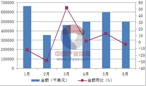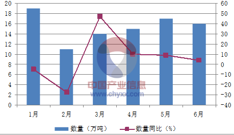 月份數量(萬噸)金額(千美元)數量同比(%)金額同比(%)1月19662,723-5-12.32月11356,468-27.4-283月14462,6194752.24月15499,40010.21.65月17598,1349.112.96月16499,7924-3.5數據來源:中國海關,中經先略數據中心整理