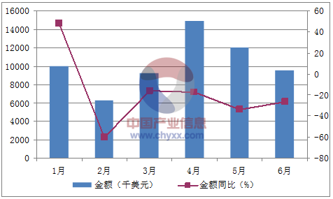 月份數量(萬噸)金額(千美元)數量同比(%)金額同比(%)1月19,92769.547.82月16,297-50.4-60.33月19,1741.9-16.14月114,877-12.3-17.55月111,991-26.1-33.76月19,530-25.8-26.2數據來源:中國海關,中經先略數據中心整理