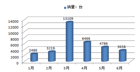 2016年1-6月中國挖掘機銷量規(guī)模