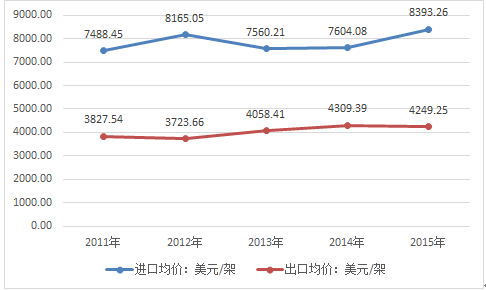 年度貿易金額:美元數量:架2011進口$37,996,4135,0742011出口$25,858,8386,7562012進口$37,820,5004,6322012出口$26,691,1617,1682013進口$34,950,8294,6232013出口$27,532,2416,7842014進口$42,537,2145,5942014出口$28,610,0186,6392015進口4985598459402015出口243906995740資料來源:公開資料整理