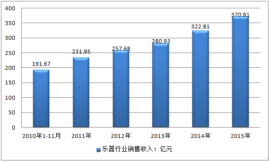 核心提示:2015年1~12月,規模以上樂器企業有231家,比上一年同期增加11家,累計完成主營業務收入370.81億元; 累計工業增加值增速為9.1%, 高于同期全輕工行業平均水平(6.36%);主營業務收入利潤率為7.13%,高于同期全輕工行業62015年1~12月,規模以上樂器企業有231家,比上一年同期增加11家,累計完成主營業務收入370.81億元; 累計工業增加值增速為9.1%, 高于同期全輕工行業平均水平(6.36%);主營業務收入利潤率為7.13%,高于同期全輕工行業6.45%的平均水平;累計完成出口交貨值123.92億元;累計利潤總額26.43億元;樂器行業虧損面為10.82%,低于2014年(11.36%)和2013年(14.75%)的水平。1~12月,我國樂器行業累計進出口總額為20.28億美元。其中:出口額16.89億美元; 累計進口額3.39億美元。