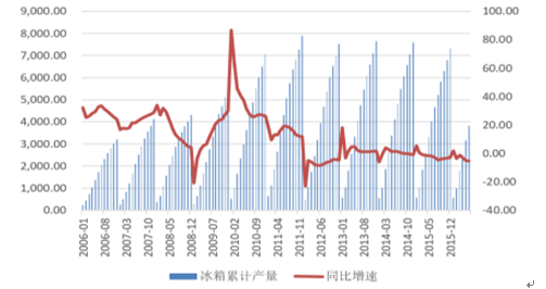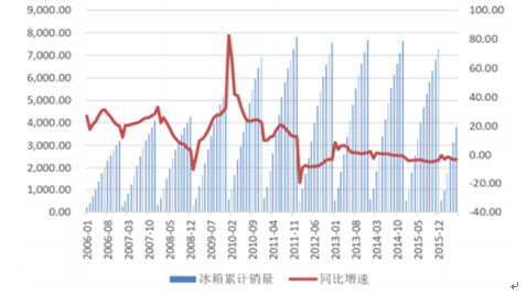 核心提示:截至 6 月底,我國冰箱累計產量 3813.3 萬臺,同比下降了 5.27%,累計銷量 3830.1 萬臺,同比下跌 3.02%。5 月單月產量 664.8 萬臺,同比下跌 6.6%,銷量 693.2 萬臺, 同比下跌 2.3%。2006-截至 6 月底,我國冰箱累計產量 3813.3 萬臺,同比下降了 5.27%,累計銷量 3830.1 萬臺,同比下跌 3.02%。5 月單月產量 664.8 萬臺,同比下跌 6.6%,銷量 693.2 萬臺, 同比下跌 2.3%。
