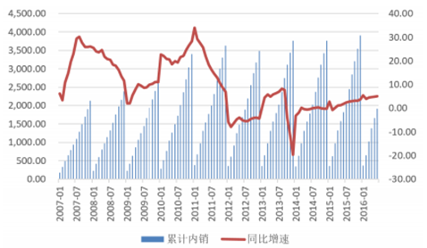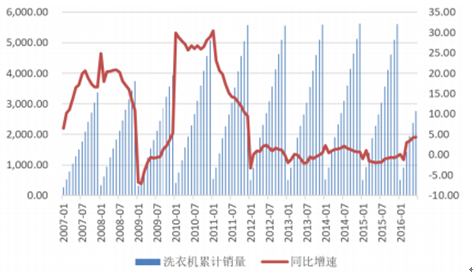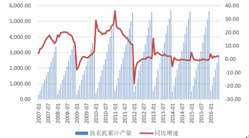 2016上半年我國洗衣機累計產(chǎn)銷量、出口量統(tǒng)計