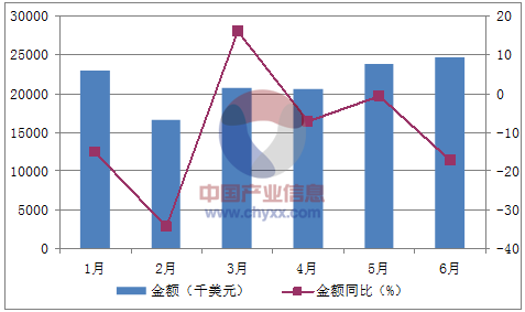 資料來源:中國海關(guān),中經(jīng)先略數(shù)據(jù)中心整理2016年1-6月中國家用型縫紉機出口金額統(tǒng)計圖