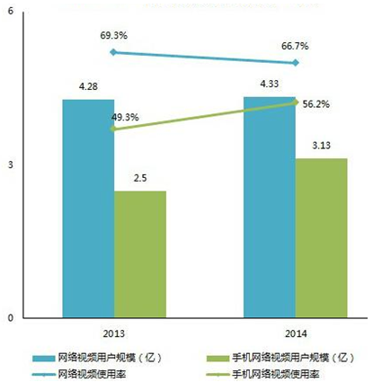 2013-2014年網絡視頻用戶規模和使用率
