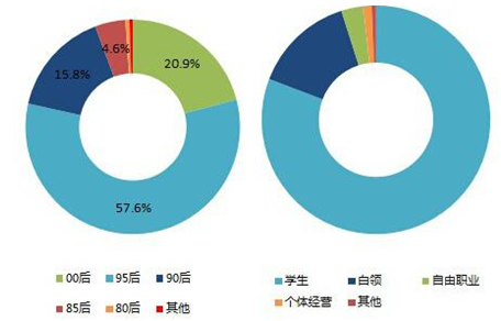 最新數據表明,中國二次元用戶集中分布于95后年齡段,數量比例高達57.6%,其次是年齡偏小的00后,其數量比例為20.9%,95后及00后兩大群體共計占到78.5%,二次元群體呈現年輕化特征。與年齡分布相一致,二次元用戶的職業多為學生類別,份額達80.8%,其次是白領類別,份額為14.3%?傮w來講,二次元群體畫像為年輕學生族群。