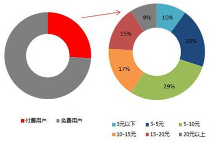 總特征:近3億用戶;三成付費;10元以內支付額度。