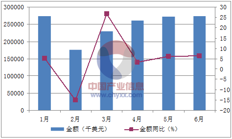 核心提示:智研咨詢數據顯示:2016年1-6月中國鍵盤、鼠標器出口數量為22,675萬個,同比下降5.1%;2016年1-6月中國鍵盤、鼠標器出口金額為1,466,916千美元,同比增長3.9%。2016年1-6月中國鍵盤、鼠標器出口量統計表如下表所中經先略數據中心數據顯示:2016年1-6月中國鍵盤、鼠標器出口數量為22,675萬個,同比下降5.1%;2016年1-6月中國鍵盤、鼠標器出口金額為1,466,916千美元,同比增長3.9%。2016年1-6月中國鍵盤、鼠標器出口量統計表如下表所示:2016年1-6月中國鍵盤、鼠標器出口量統計表月份數量(萬個)金額(千美元)數量同比(%)金額同比(%)1月4,263273,614-7.45.32月2,617175,323-27.9-15.13月3,482228,92514.826.84月4,256260,5415.83.35月4,208272,066-0.96.26月4,192273,476-4.16.5數據來源:中國海關,中經先略數據中心整理2016年1-6月中國鍵盤、鼠標器出口數量統計圖