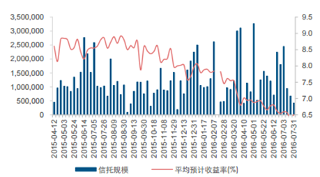 信托產品規模及收益率變動(單位:萬元)