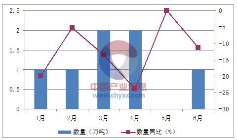 月份數量(萬噸)金額(千美元)數量同比(%)金額同比(%)1月12,513-19.9-53.52月11,576-5.2-40.23月24,733-13.5-46.54月25,146-23.9-43.95月-598--84.76月12,761-11.2-26數據來源:中國海關,中經先略數據中心整理