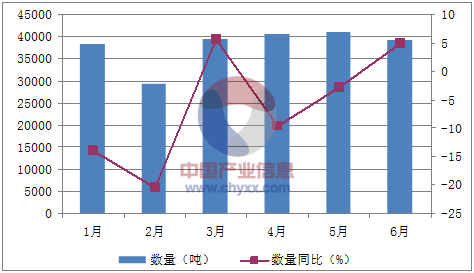 核心提示:智研咨詢數據顯示:2016年1-6月中國銅材出口數量為226,532噸,同比下降6.7%;2016年1-6月中國銅材出口金額為1,531,422千美元,同比下降18.7%。2016年1-6月中國銅材出口量統計表如下表所示: 2016年1-中經先略數據中心數據顯示:2016年1-6月中國銅材出口數量為226,532噸,同比下降6.7%;2016年1-6月中國銅材出口金額為1,531,422千美元,同比下降18.7%。2016年1-6月中國銅材出口量統計表如下表所示:2016年1-6月中國銅材出口量統計表月份數量(噸)金額(千美元)數量同比(%)金額同比(%)1月38,343264,466-14-26.22月29,193199,169-20.5-31.83月39,360256,6995.6-6.34月40,468275,380-9.6-19.45月40,997282,677-2.8-14.16月39,216263,0975-9.3數據來源:中國海關,中經先略數據中心整理2016年1-6月中國銅材出口數量統計圖